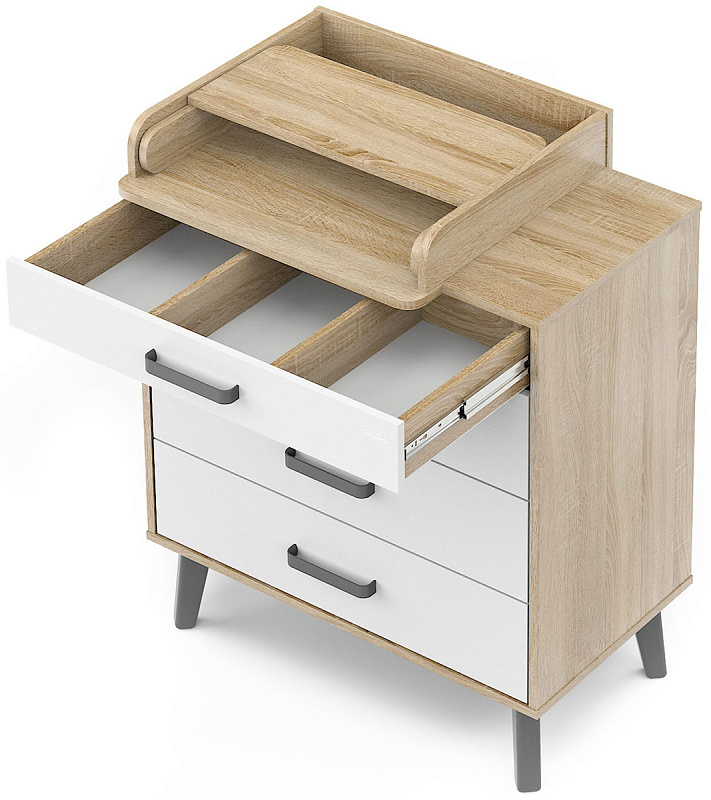 Детский пеленальный комод Атон Gall Nero 804 с органайзером дуб сонома-белый
