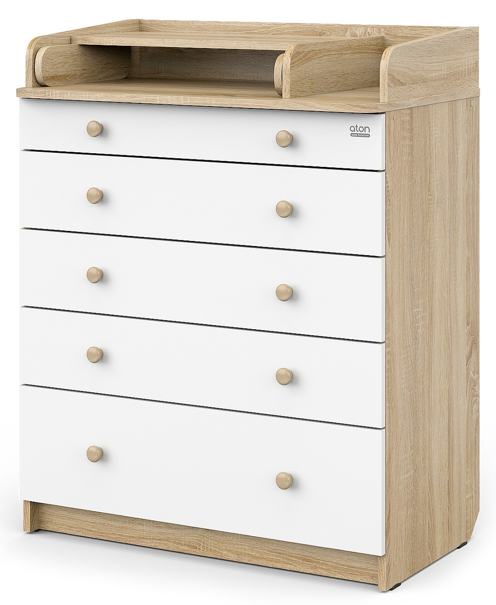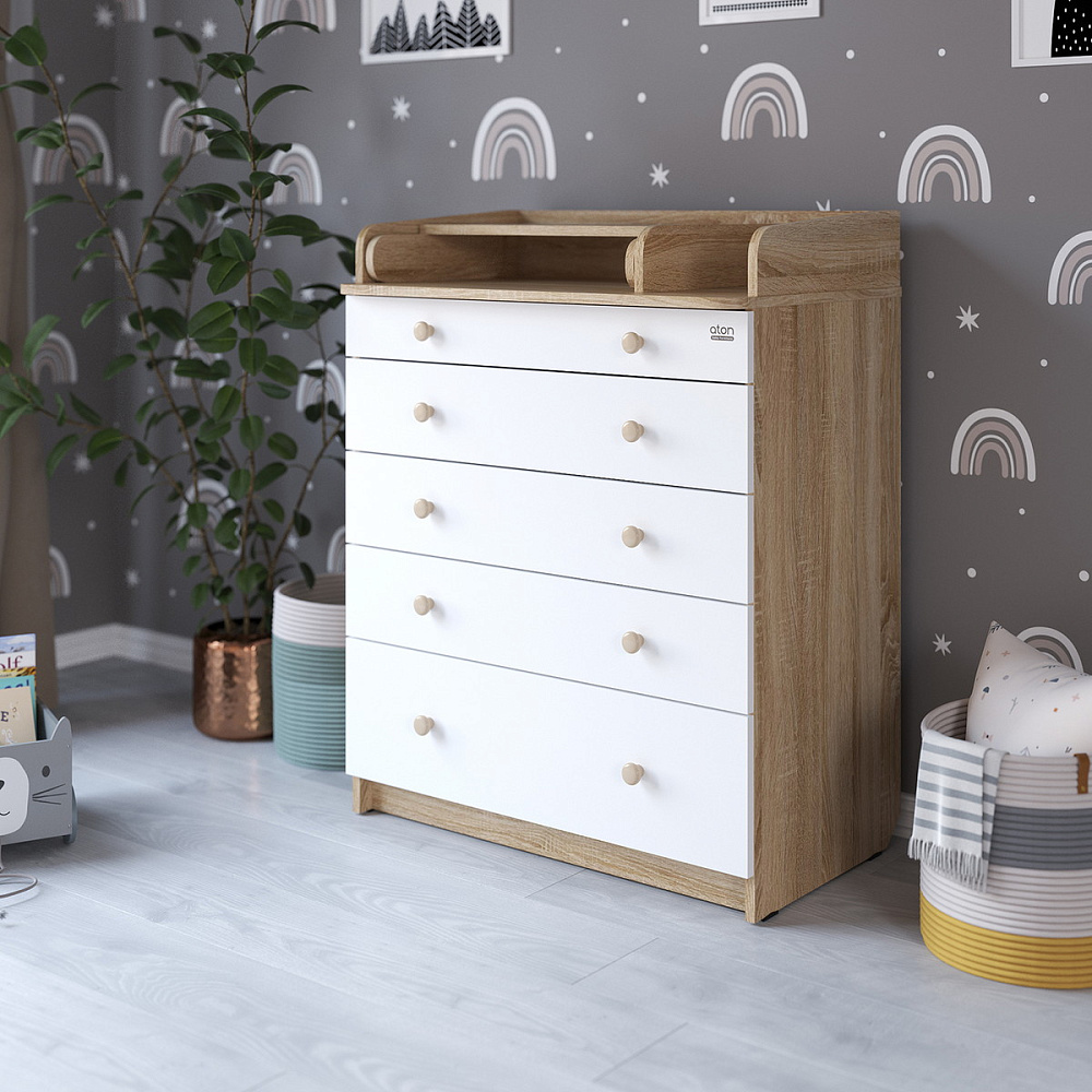 Детский пеленальный комод Атон Leo 805 с органайзером, ЛДСП дуб сонома-белый