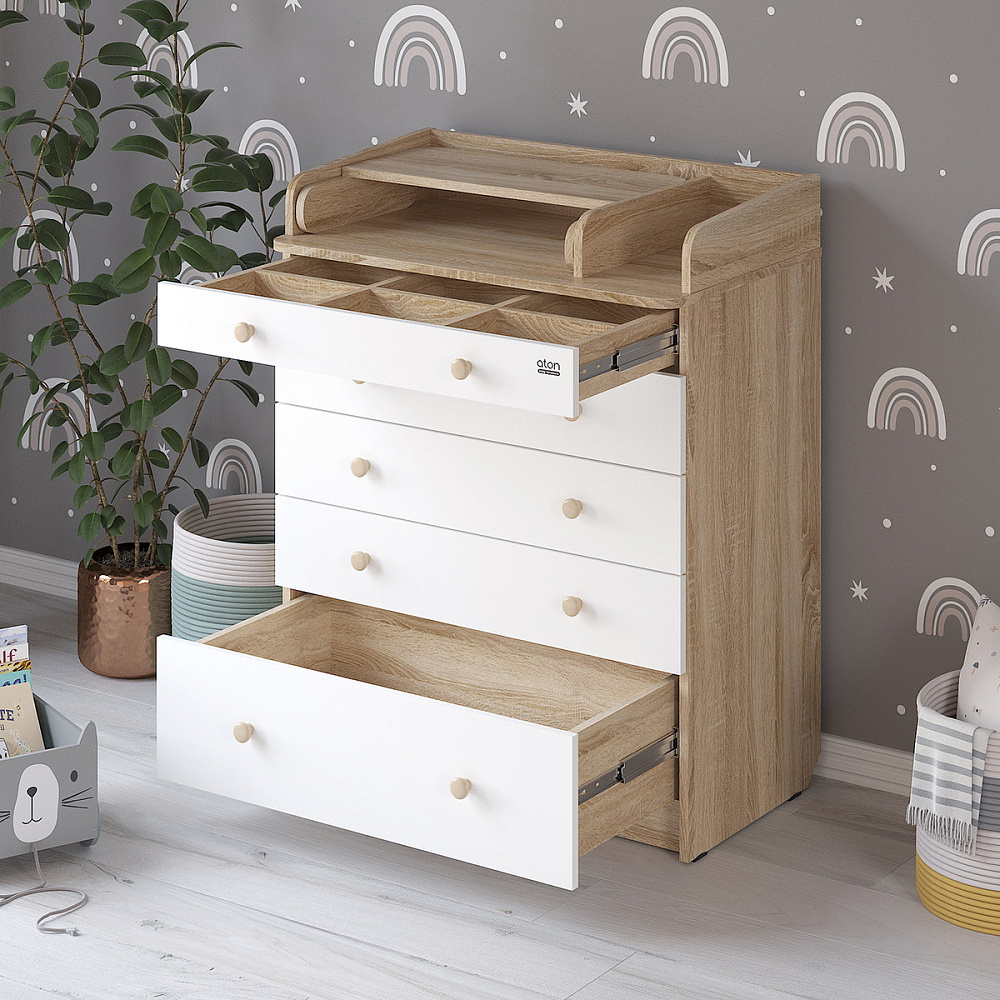- верхний ящик с органайзером для удобства сортировки детских вещей (глубина 7 см).