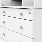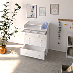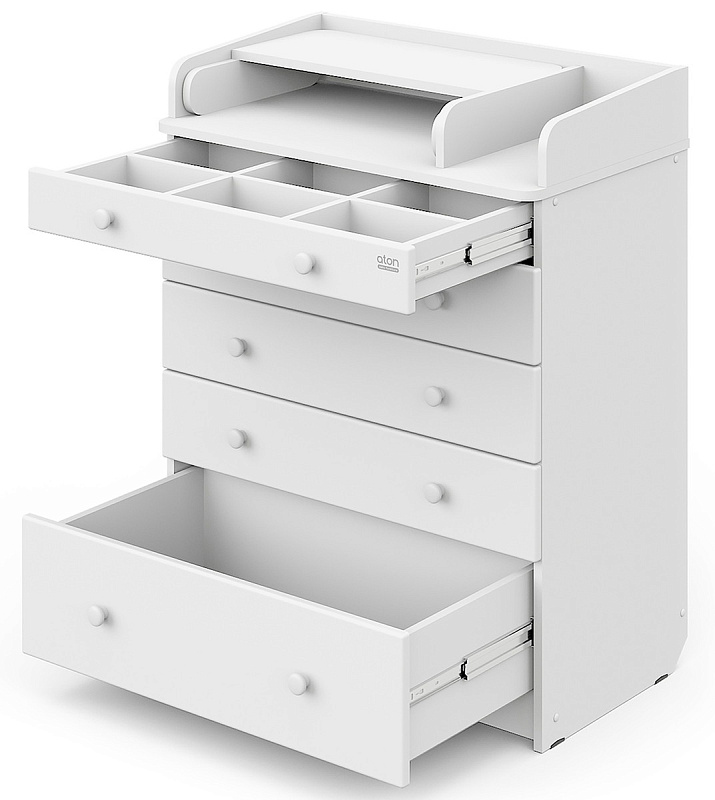 Элегантный, выполненный в современном стиле и удобный пеленальный комод, в комбинациях контрастных оттенков благородной древесины с нежными, приятными на ощупь, белыми или бежевыми фасадами. В комоде используется пеленальный столик с простым и надежным, скрытым механизмом раскладывания. Есть отделение рядом с пеленальным столиком для средств по уходу за малышом в быстром доступе. Комод очень вместительный благодаря пяти ящикам, которые установлены на надежные шариковые направляющие бесшумного хода. Нижний ящик большей глубины, а верхний с органайзером для удобства сортировки детских вещей (6 отделений).