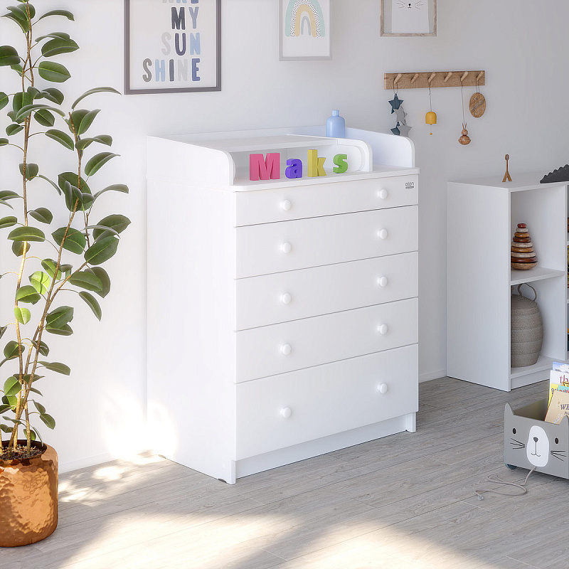Детский пеленальный комод Атон М MAKS ЛДСП 80/5 с органайзером белая аляска-белый