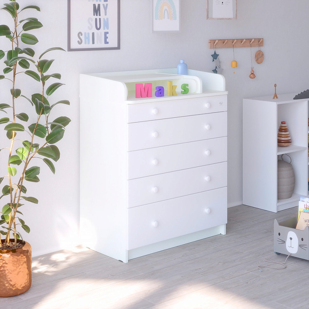Детский пеленальный комод Атон М MAKS ЛДСП 80/5 с органайзером белый премиум-белый
