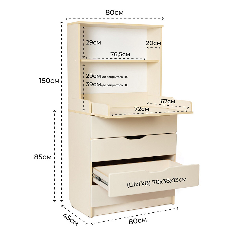 комод имеет откидной пеленальный столик;