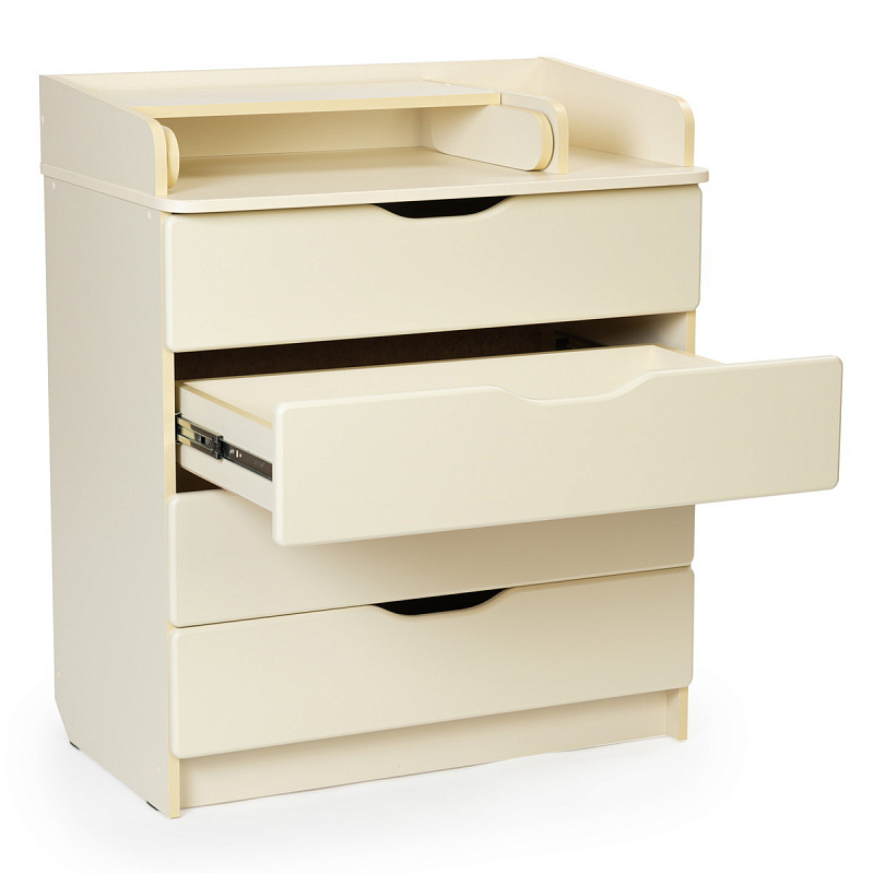 помощник становится детский комод Bebizaro. Комод можно разместить в любом удобном месте. Это незаменимый предмет в доме, выступающий не только в роли шкафа для детских вещей, но и как пеленальный столик и место для переодевания ребёнка. Удобный и практичный комод с 4-я ящиками позволит значительно сэкономить пространство и разместить все необходимое для вашего ребёнка, детские вещи, подгузники, средство для гигиены. Комод оборудован пеленальным столиком с простым и надежным механизмом раскладывания, 4-е вместительных ящика.