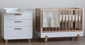 Комод выполнен из МДФ и массива ясеня, при производстве используется высококачественная пленка. Дизайн идеально сочетается с кроваткой этой же серии и гармонично вписывается в интерьер детской.
