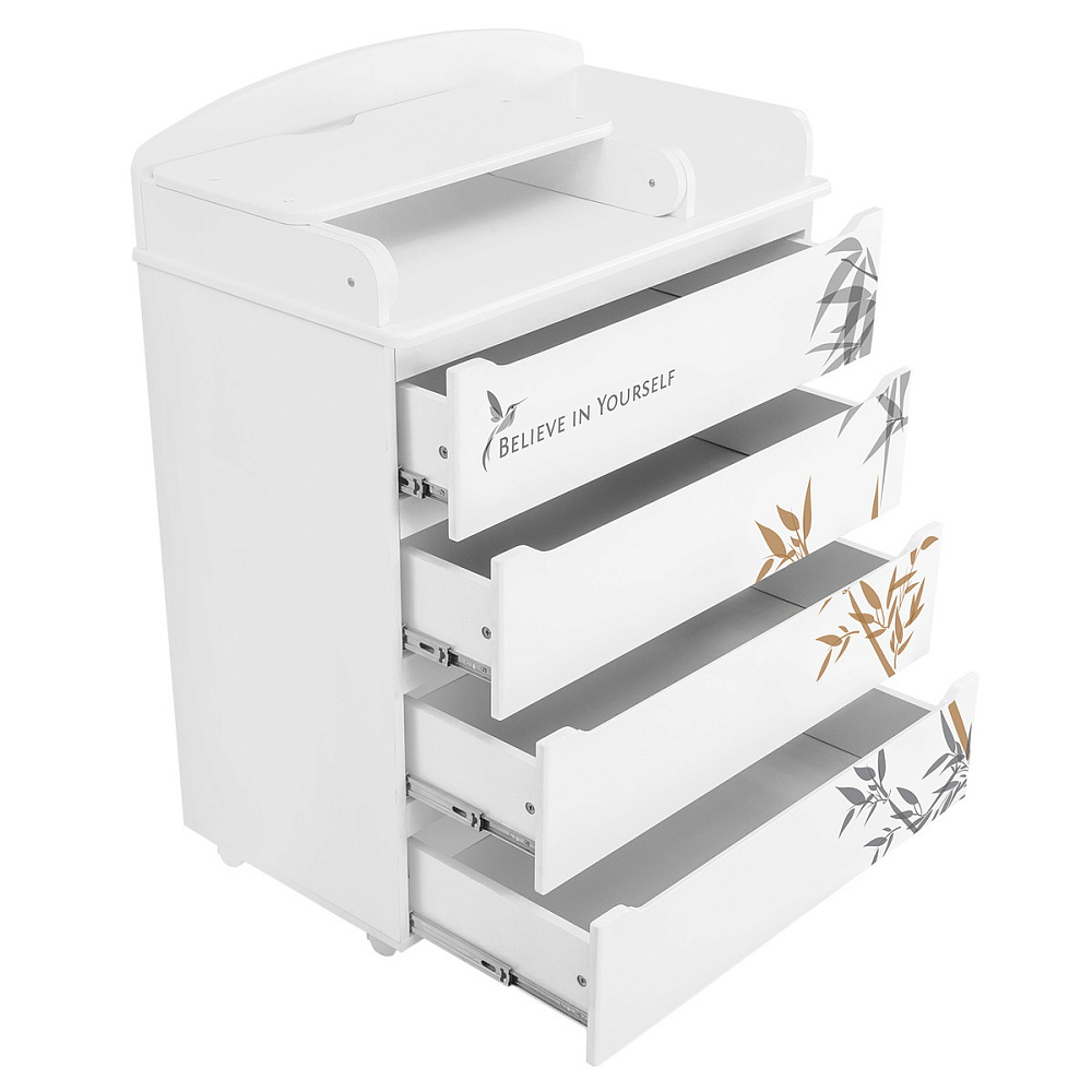 Комод Indigo Green Line с узким пеленальным столиком и четырьмя вместительными выдвижными ящиками порадует вас не только своей функциональностью, но и эстетическим внешним видом.