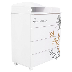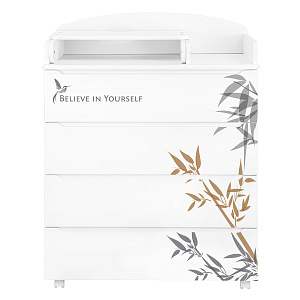 Этот комод станет ярким акцентом в интерьере детской комнаты, благодаря разнообразию вариантов художественного оформления фасадов: бамбук, травинки, листочки, волна и цветы. Все рисунки выполнены в нежной экологичной цветовой гамме. Комоды серии Green Line создают атмосферу уюта и спокойствия в детской комнате.