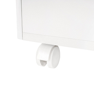 комод оснащен удобными колесами, два из которых оборудованы стопорами для удобства перемещения и фиксации в нужном месте.