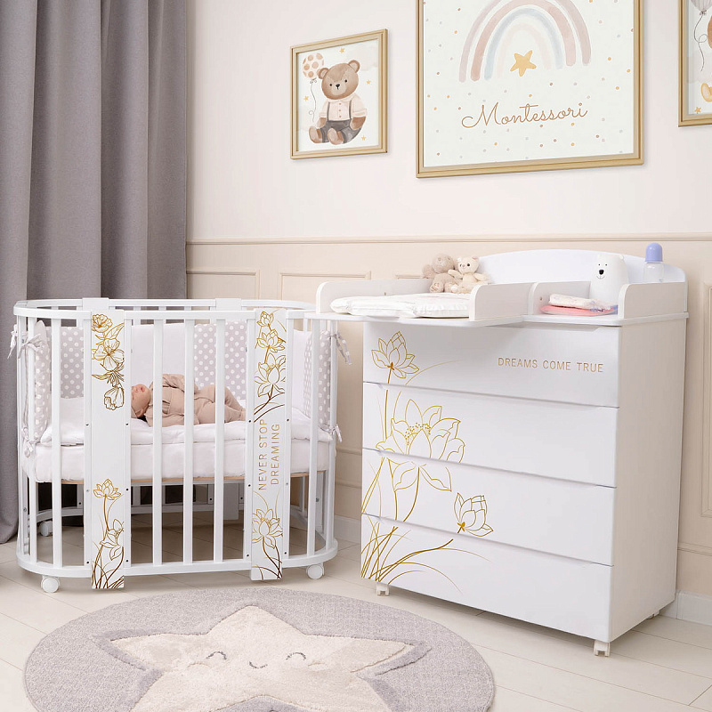 четыре вместительных ящика для вещей и аксессуаров малыша;