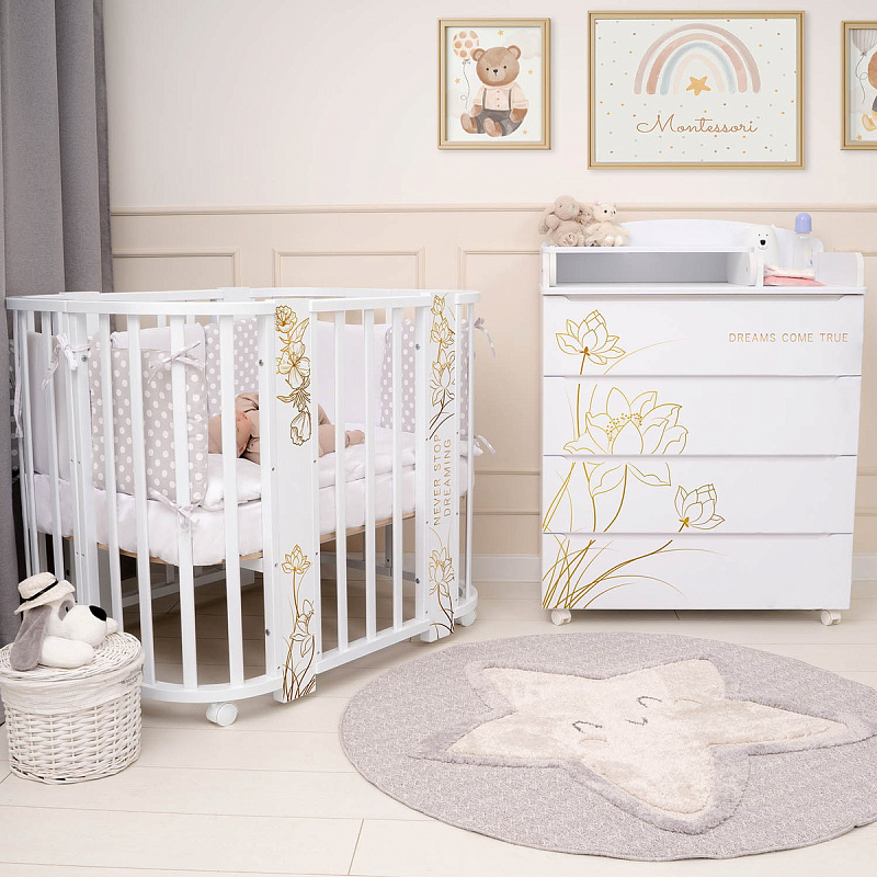 Детский пеленальный комод Indigo Green Line 800/4 цветы