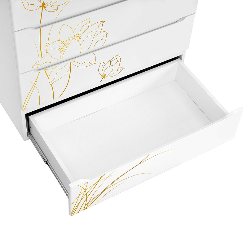 Этот комод станет ярким акцентом в интерьере детской комнаты, благодаря разнообразию вариантов художественного оформления фасадов: бамбук, травинки, листочки, волна и цветы. Все рисунки выполнены в нежной экологичной цветовой гамме. Комоды серии Green Line создают атмосферу уюта и спокойствия в детской комнате.