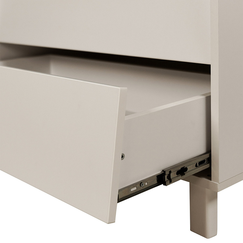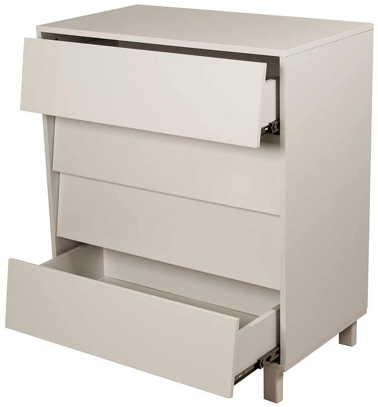 Корпус комода выполнен из ЛДСП – материала, известного своей прочностью, долговечностью и безопасностью для детей. Ножки высотой 10 см приподнимают комод над полом, что облегчает уборку и предотвращает скопление пыли под ним.