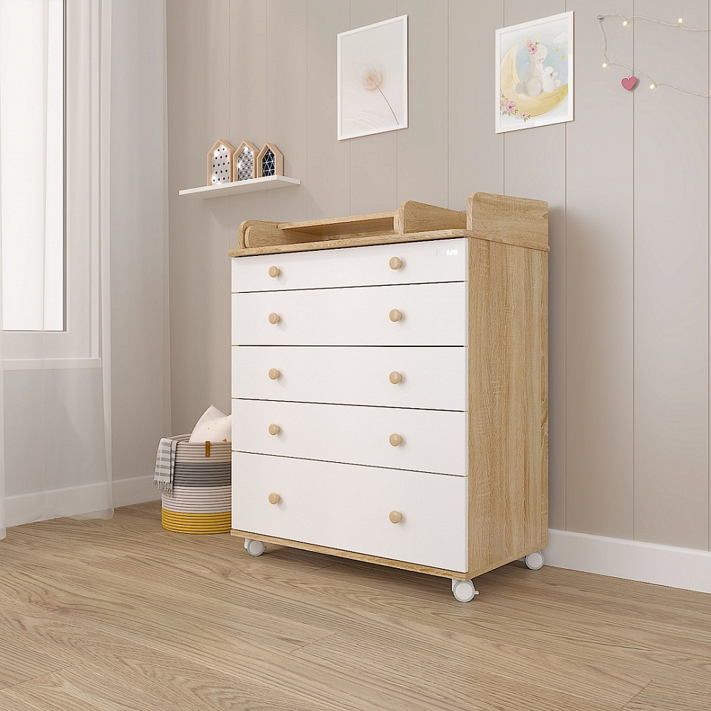 Детский пеленальный комод Pituso Tori колесо Дуб сонома-белый