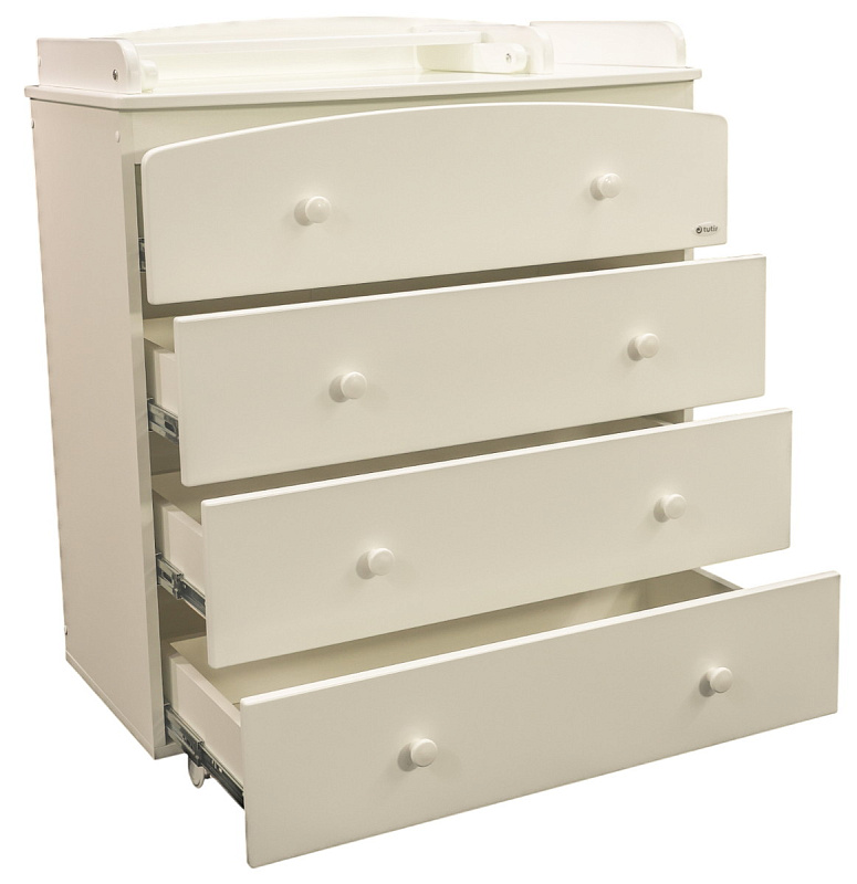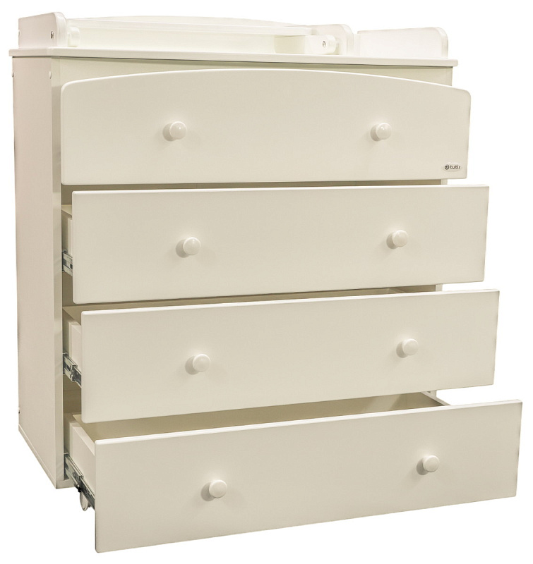 Четыре вместительных ящика, оснащенные шариковыми направляющими, обеспечивают плавное и бесшумное выдвижение. Размеры ящиков (730х350х100 мм) позволяют удобно разместить подгузники, пеленки, одежду и другие необходимые вещи для ухода за ребенком.