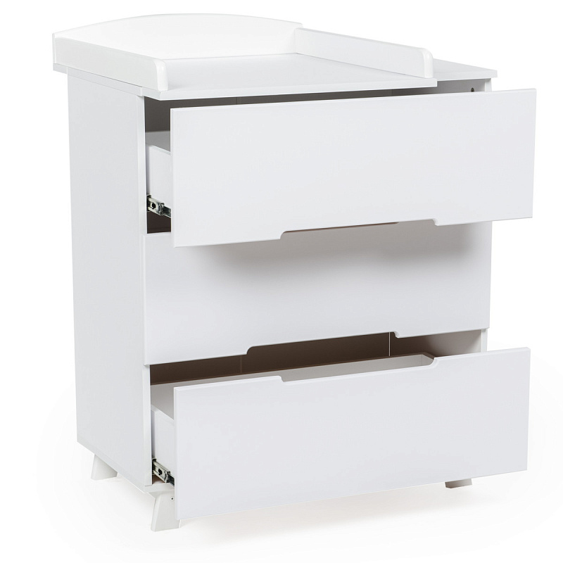 Для удобства пользования комодом при уходе за новорожденным на него можно установить специальную пеленальную накладку. Это позволяет превратить комод в практичную и удобную пеленальную станцию. Комод Vikalex Норман оснащен тремя просторными ящиками, которые имеют выемки вместо традиционных ручек.