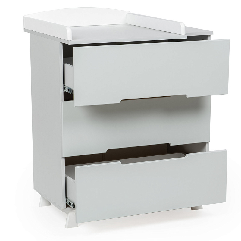 Для удобства пользования комодом при уходе за новорожденным на него можно установить специальную пеленальную накладку. Это позволяет превратить комод в практичную и удобную пеленальную станцию. Комод Vikalex Норман оснащен тремя просторными ящиками, которые имеют выемки вместо традиционных ручек.
