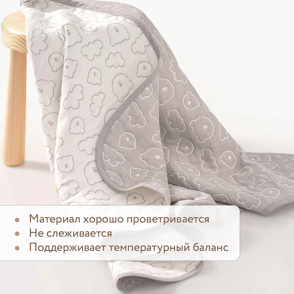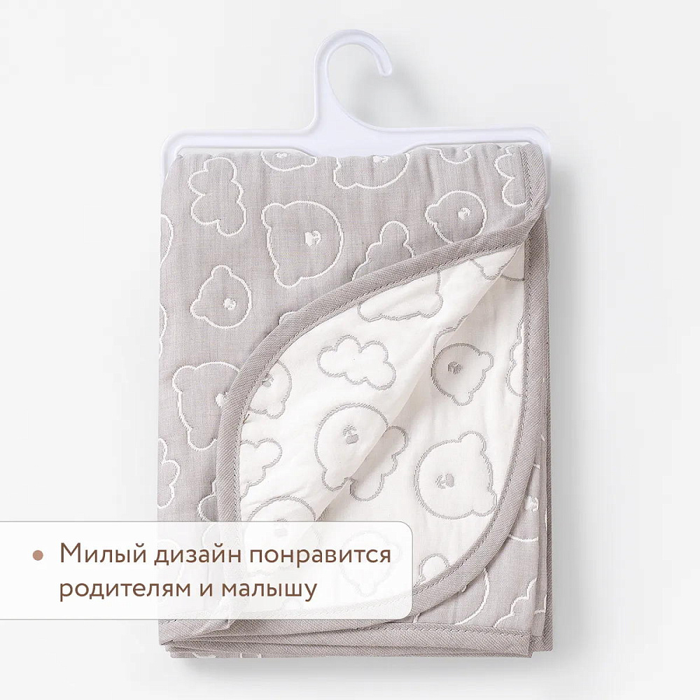 Стильное и практичное решение — двусторонний дизайн пледа. Милые мордашки зверюшек в узоре понравятся и родителям, и малышу.