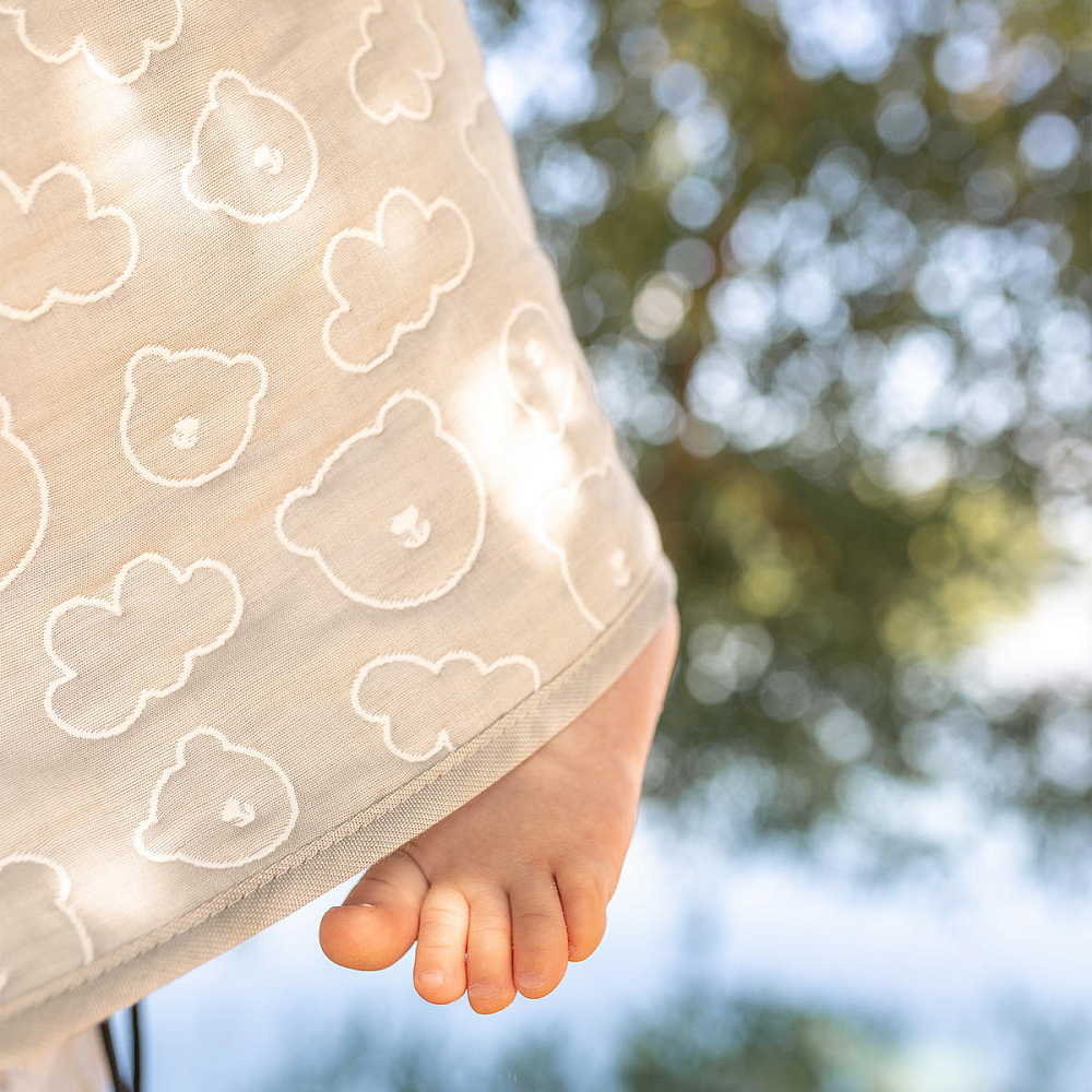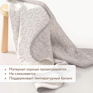 Это красивый и практичный аксессуар, который можно использовать и дома как одеяло, и для пеленания, и на прогулке. Натуральный хлопок Eco Soft Cotton по внешним сторонам пледа деликатно касается кожи ребенка, хорошо пропускает воздух и поддерживает комфортную температуру. Специальный способ создания узора без окрашивания — залог того, что цвет останется неизменным после многократных стирок.