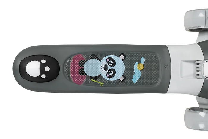 Самокат с мордочкой панды F12, подсветка платформы, светящиеся колеса и музыкальные эффекты.