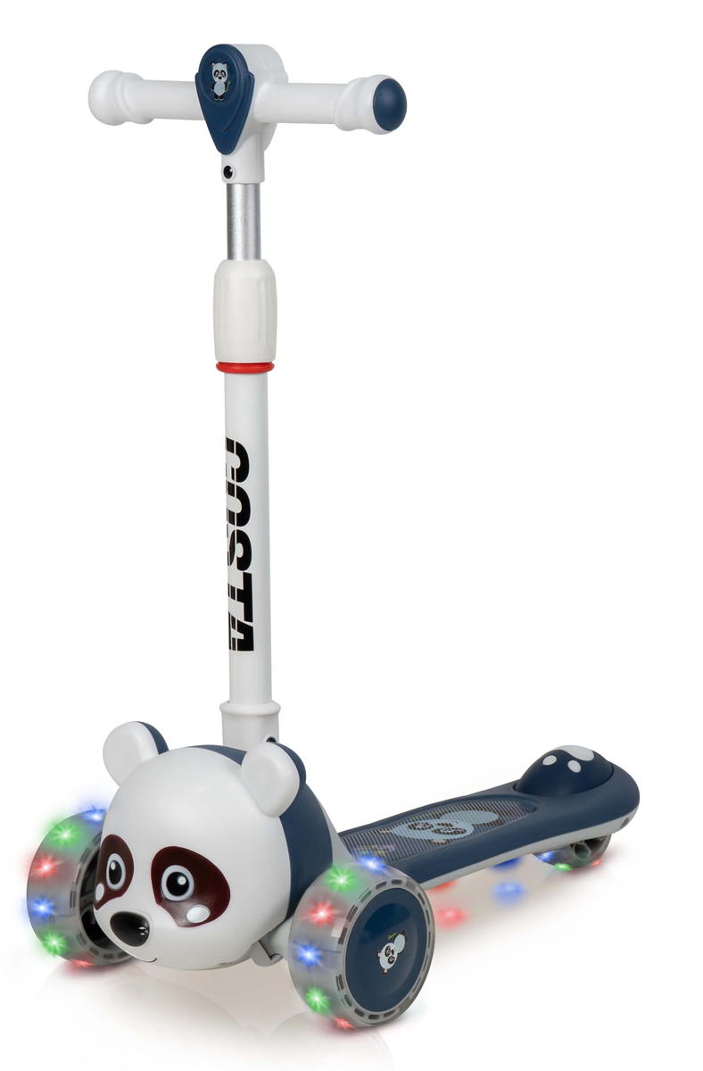 Самокат с мордочкой панды F12, подсветка платформы, светящиеся колеса и музыкальные эффекты.