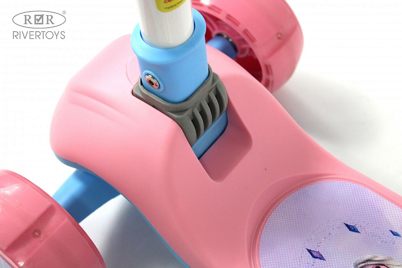 Высота рулевой стойки регулируется от 65 до 80 см, что позволяет использовать самокат детям разного роста. Складная рулевая стойка делает самокат компактным и удобным для хранения и транспортировки.