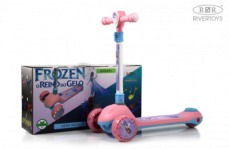 Дизайн самоката яркий и привлекательный, а передние светящиеся колёса добавляют веселья и оригинальности.