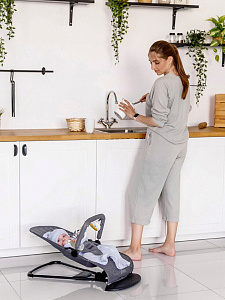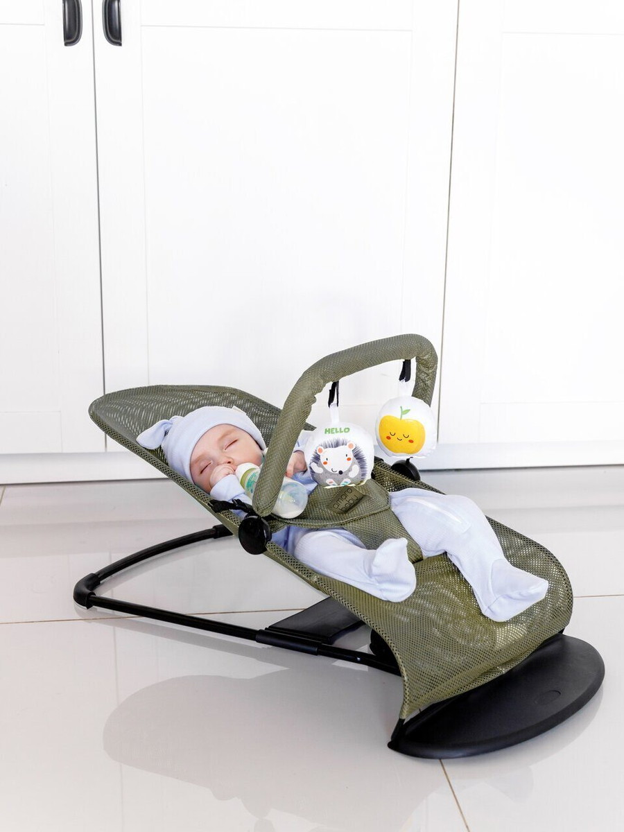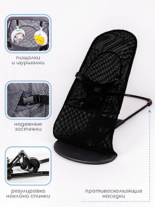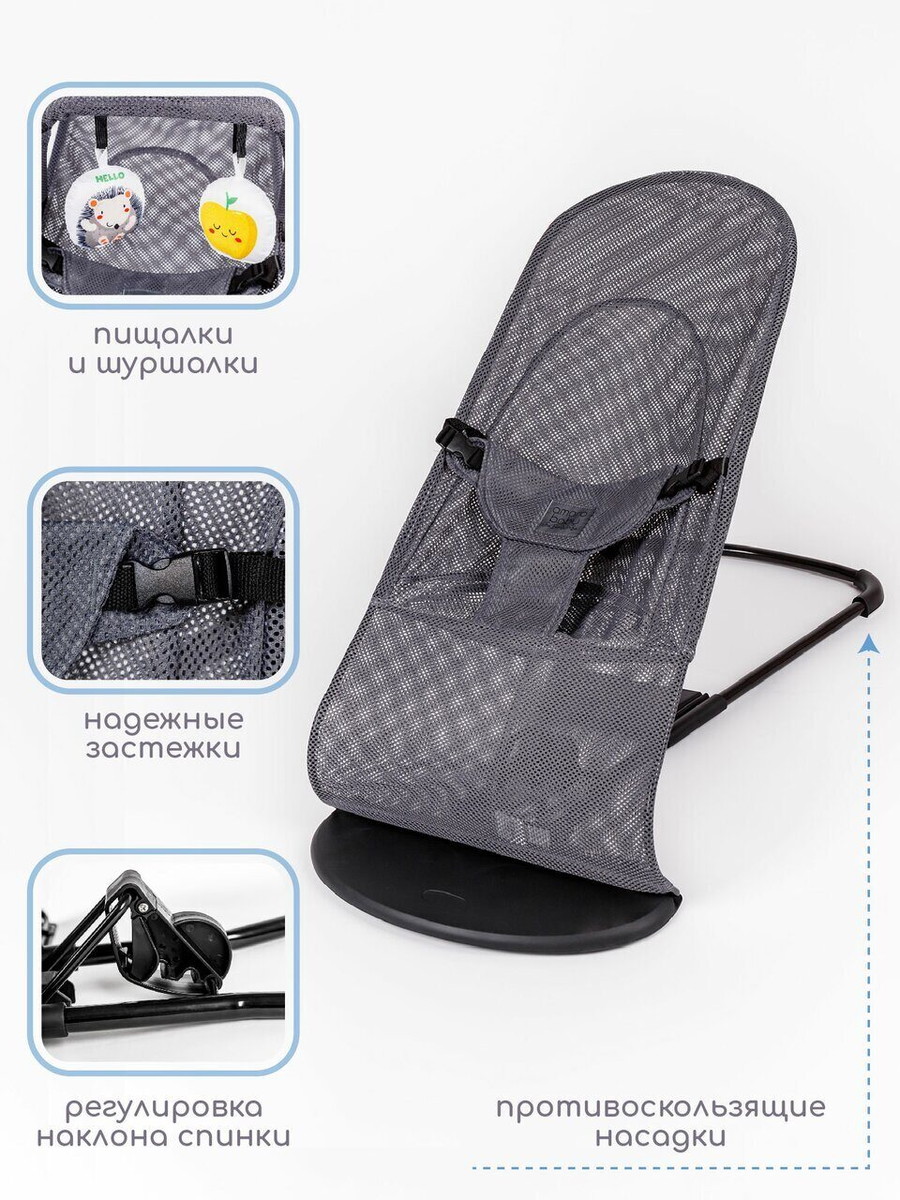Детский шезлонг Amarobaby незаменимый помощник для мам, который помогает освободить руки и занять малыша. Кресло-шезлонг имеет 4 положения: положение, когда ребенок может полностью лежать и несколько положений, когда ребенок сможет самостоятельно сидеть. В детском шезлонге для новорожденных вашему малышу никогда не будет жарко, так как он изготовлен из сетчатого материала, который хорошо пропускает воздух. Ребенок, совершая движения в шезлонге, создает естественное покачивание. Шезлонг для малышей подойдет от рождения и до двух лет. У шезлонга имеется дуга с двумя шуршащими игрушками, что позволяет развивать моторику ребенка. Когда ребенок становится более самостоятельным и начинает сидеть, шезлонг детский легко можно превратить в удобное кресло, для этого достаточно перевернуть ткань. Шезлонг быстро и легко складывается для транспортировки, поэтому его можно легко брать с собой в поездки, а также удобен при хранении. Используя кресло-шезлонг вы можете быть уверены в правильной поддержке спины и головы ребенка.