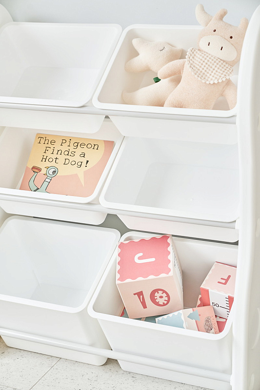 Удобный стеллаж поможет хранить детские вещи красиво и наводить порядок в квартире за считанные минуты.