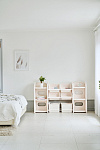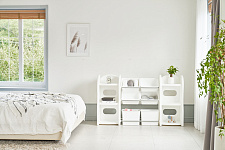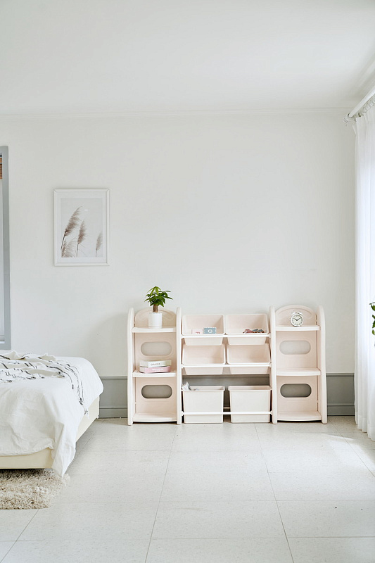 Высота стеллажа и размер отсеков разработаны с учетом детской физиологии: ребенку удобно доставать и складывать все свои сокровища самостоятельно. В начале малыш сам будет выбирать, с чем играть, а в конце с удовольствием принимать участие в уборке.