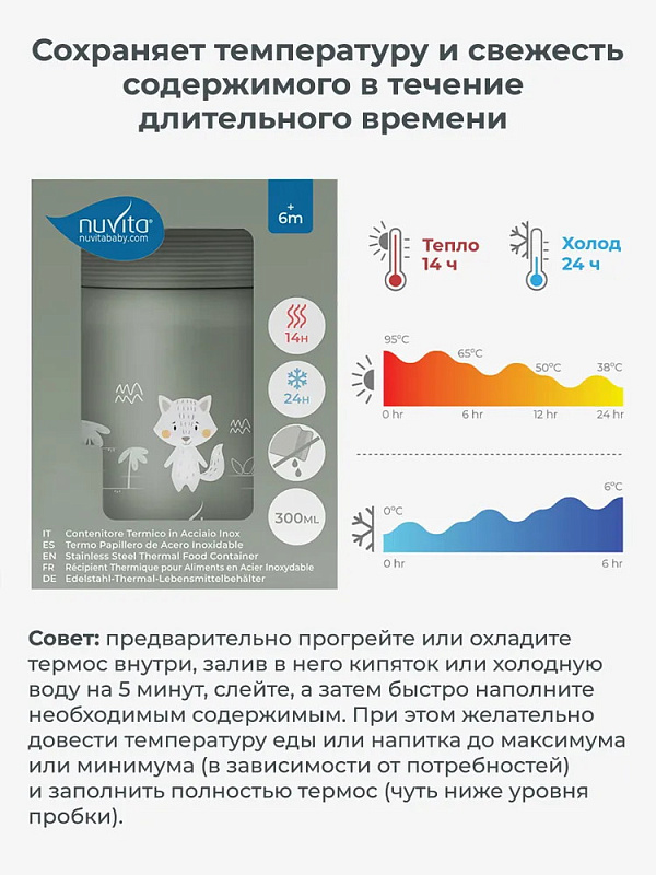 Детский термос Nuvita для еды и жидкости 4471, 300 мл серый