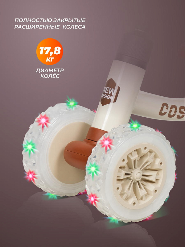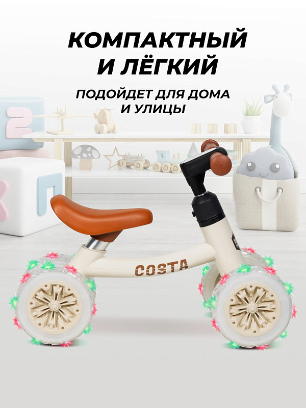 Новинка 2025 года! Толокар-беговел для активных ребят. Подходит для детей от 1 года и выдержит нагрузку до 25 кг. Беговел станет спутником малыша на прогулках во дворе и в парке. Колеса из материала PU. Светящиеся колеса привлекают внимание и обеспечивают безопасность во время вечерних прогулок. Мягкое сиденье из экокожи и противоскользящие накладки на руле сделают поездки на беговеле удобнее и безопаснее. Высота сиденья и руля регулируется, чтобы подобрать комфортную посадку для ребенка и использовать беговел дольше.