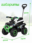 Материал сиденья выполнен из экокожи, что обеспечивает мягкость, легкость ухода и долговечность. Широкие колеса делают эту каталку надежной и устойчивой на любой поверхности, что позволяет детям наслаждаться игрой, как в помещении, так и на улице.