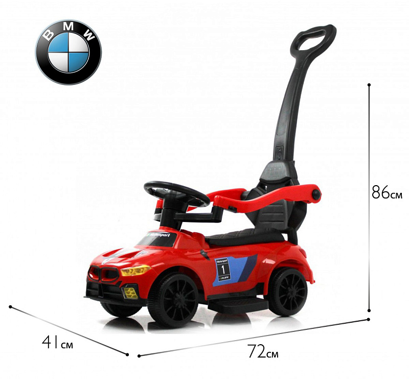 Детский толокар RiverToys F003FF-P с родительской ручкой красный