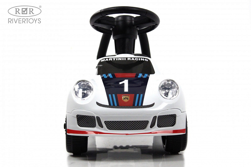 Эргономичное сиденье не скользит и имеет спинку. Закругленный руль удобен для детей, а ограниченный угол поворота обеспечивает безопасную езду. Руль оснащен функциональными кнопками для звуковых эффектов.