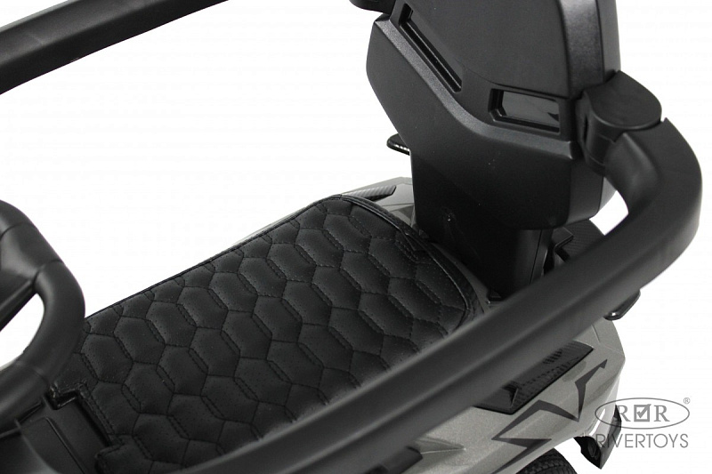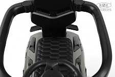 У данной модели отсутствует пульт управления. Наличие подножек позволяет ребенку комфортно сидеть и отдыхать во время передвижения с родителем. Также в конструкции толокара присутствует родительская поворотная ручка, что облегчает родителям управление при необходимости. Колеса выполнены из каучука, что обеспечивает хорошую амортизацию и комфорт при езде. Сиденье толокара выполнено из эко-кожи, что обеспечивает удобство и легкость в уходе за ним. На толокаре также предусмотрено место для хранения, где можно разместить различные вещи.