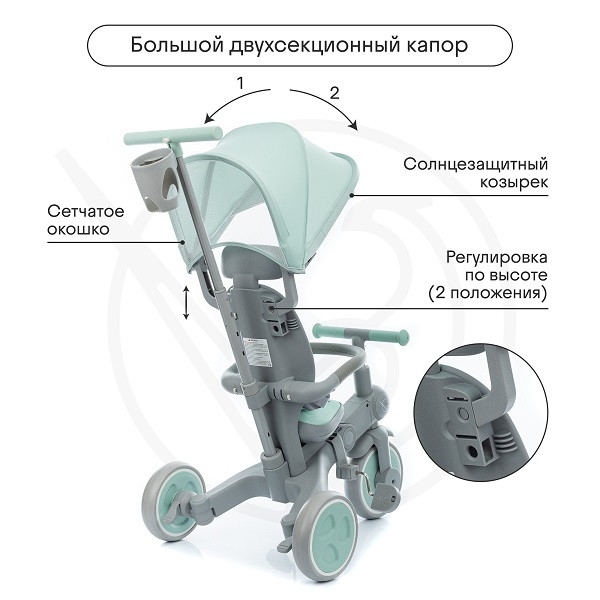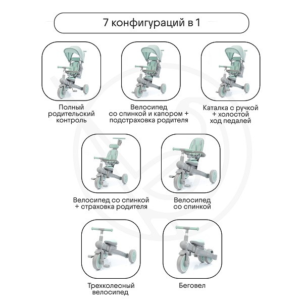 Детский трехколесный велосипед Kidzi Ride 7 в 1 Mint Green