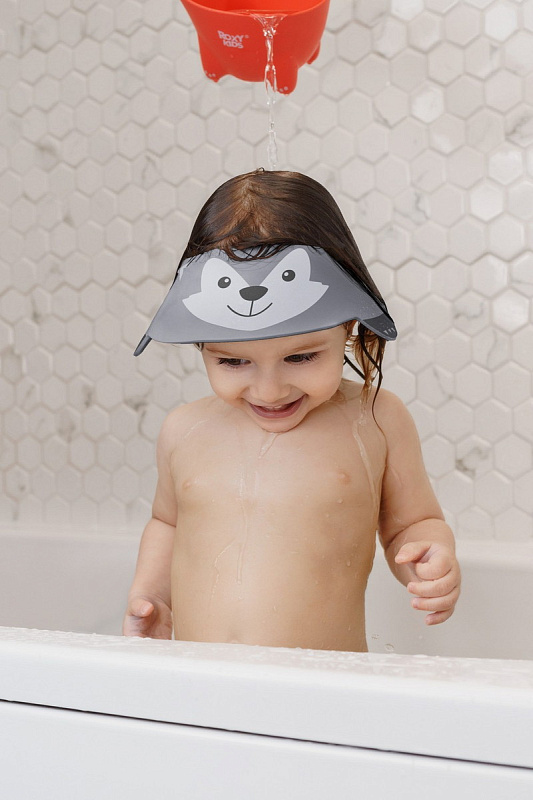Детский защитный козырек Roxy-Kids для мытья головы серый (волк)
