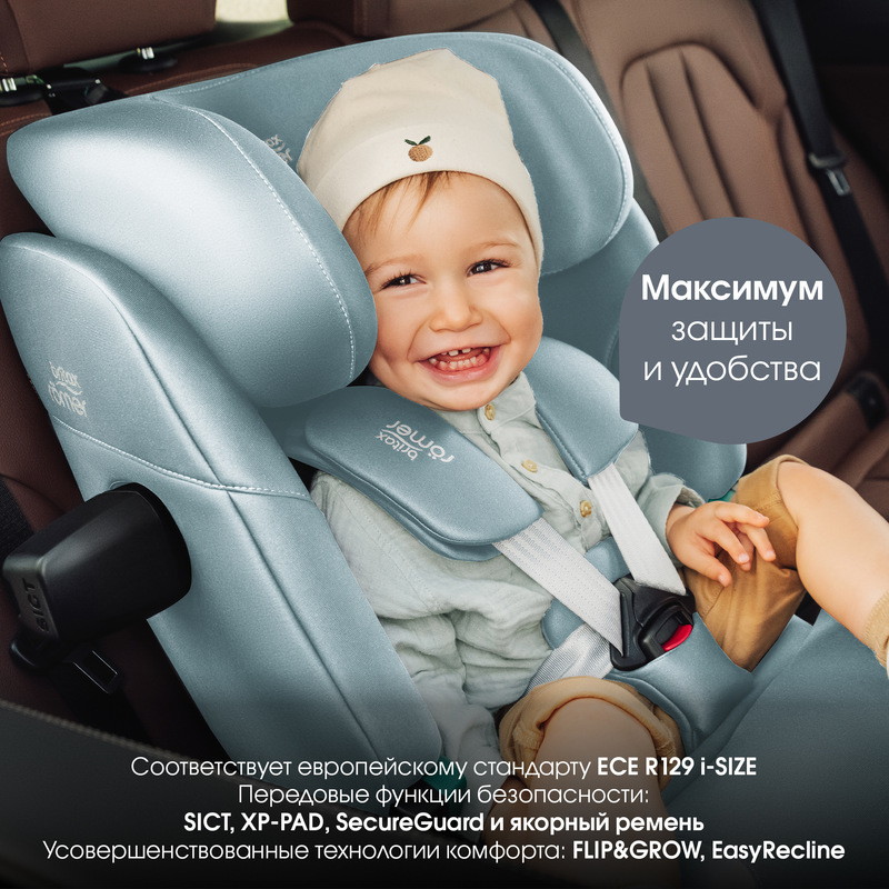 - Обеспечьте своему ребенку превосходную защиту от бокового удара и будьте уверены в его безопасности во время любой поездки. Технология Side Impact Cushion Technology (SICT) минимизирует расстояние между автомобилем и автокреслом, снижая силу бокового удара до 40%*.