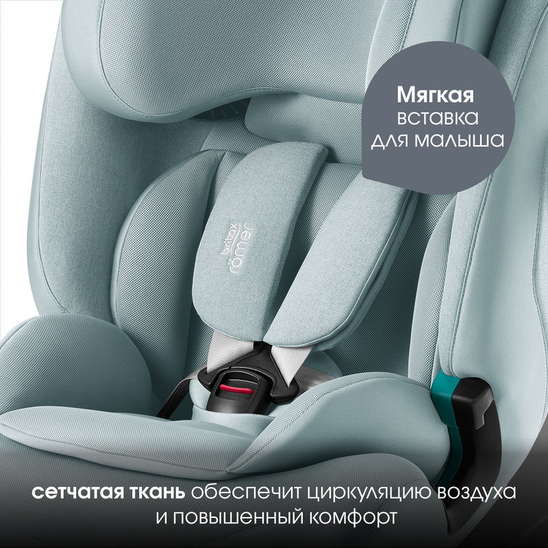 - Трехуровневая защита ребенка за счет конструкции автокресла: боковины кресла защищают тело ребенка от головы до бедер, верхние и нижние направляющие обеспечивают правильное положение ремня безопасности, мягкий подголовник защищает голову и шею ребенка, обеспечивая дополнительный комфорт.