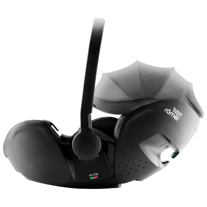 - При установке автолюльки на Britax Roemer в автомобиле или на прогулочной коляске отчетливо слышимый щелчок сообщает о том, что автокресло надёжно установлено.
