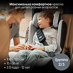 Обеспечьте надёжную защиту детям старшего возраста. Высокая спинка корпуса поддерживает ребёнка от головы до бёдер, а направляющие ремня безопасности помогают правильно его расположить. Мягкий подголовник гарантирует безопасность и комфорт для головы и шеи вашего ребёнка, поэтому вы можете быть спокойны во время любых поездок.