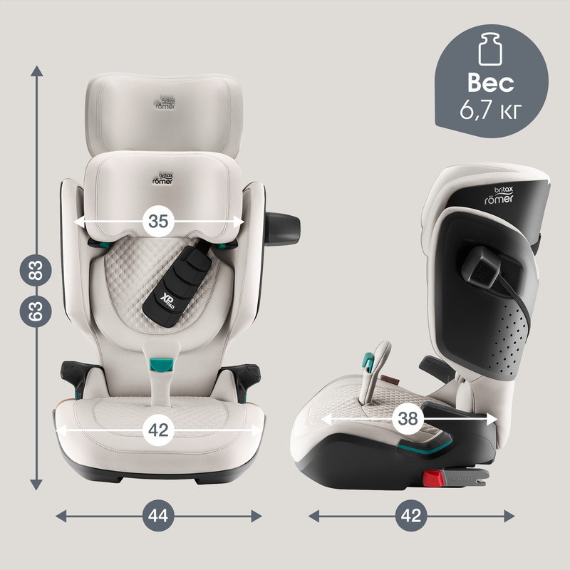 Автокресло KIDFIX PRO, сертифицированное по стандарту i-Size, отличается компактным корпусом шириной всего 44 см, что позволяет безопасно установить три таких кресла в ряд. Это особенно удобно для семей с несколькими детьми или для тех, кто часто перевозит в машине маленьких друзей своего ребенка.
