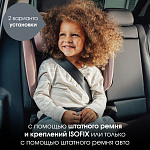 Обеспечьте надёжную защиту детям старшего возраста. Высокая спинка корпуса поддерживает ребёнка от головы до бёдер, а направляющие ремня безопасности помогают правильно его расположить. Мягкий подголовник гарантирует безопасность и комфорт для головы и шеи вашего ребёнка, поэтому вы можете быть спокойны во время любых поездок.