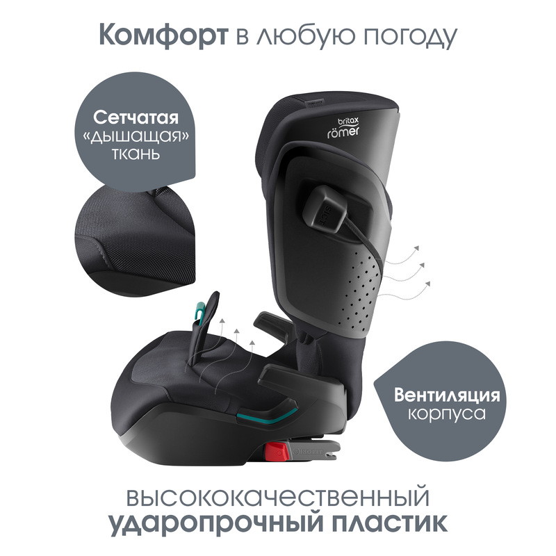 В автокресле KIDFIX PRO предусмотрены вентиляционные отверстия, которые обеспечивают циркуляцию воздуха. Это поможет ребенку чувствовать себя комфортно даже в самые жаркие дни. Более того, в версии STYLE используются дышащие сетчатые ткани. Благодаря улучшенной циркуляции воздуха, ваш ребёнок будет чувствовать себя спокойно и уютно.