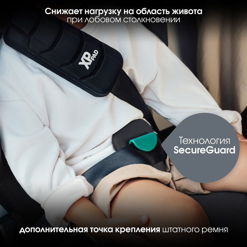 Даже при тщательном планировании и осторожном вождении подготовиться к столкновению невозможно. Компания Britax Roemer разработала специальную накладку XP-Pad из амортизирующей пены для защиты области шеи вашего ребенка при лобовом столкновении. Она предотвращает удар подбородка ребенка об грудь, поглощая до 30%* энергии, а также ограничивает резкое движение головы вперед, что обеспечивает защиту шеи вашего ребенка. В то же время она выполняет роль дополнительной накладки на ремень безопасности.