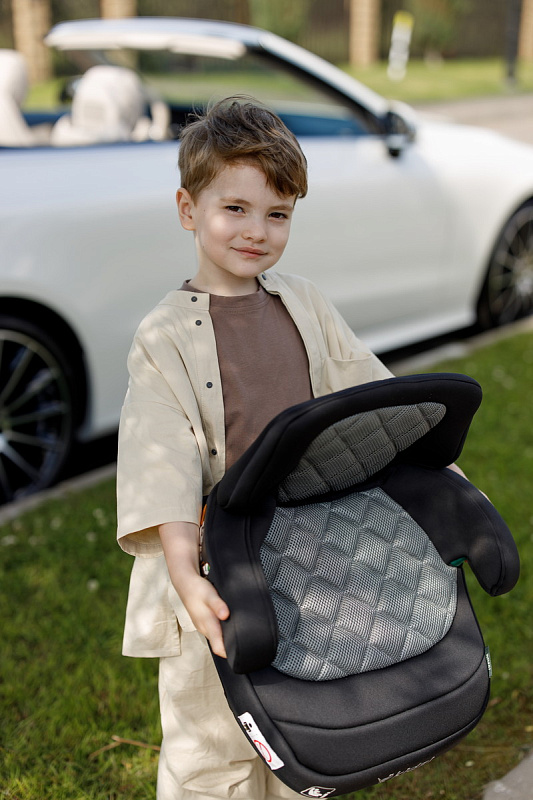 - Использование Isofix: Бустер оснащен системой Isofix, что обеспечивает надежную фиксацию в автомобиле и повышает безопасность ребенка во время поездки.