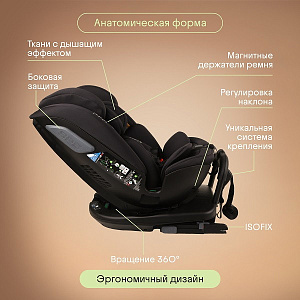 Вращение: Кресло свободно вращается на 360°, что позволяет легко сажать и высаживать ребенка.