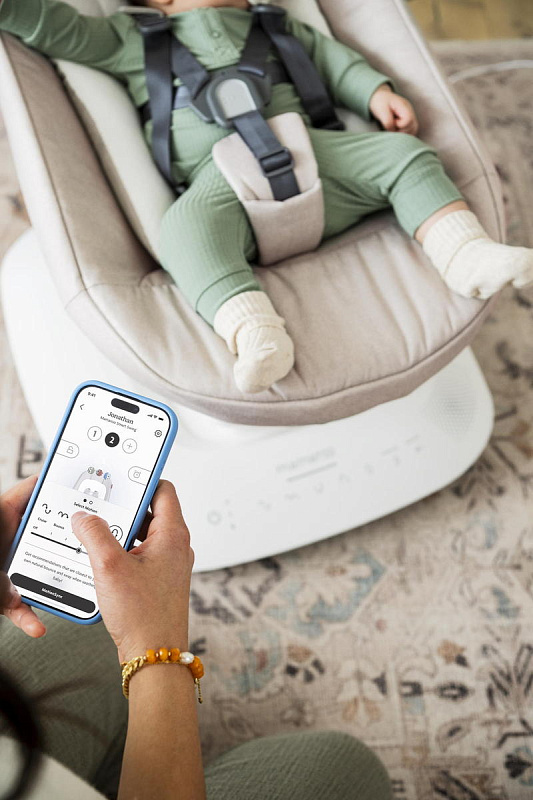 Mamaroo® Smart Swing – это синоним умных технологий, делающих вашу жизнь проще:Bluetooth-соединение: Легко управляйте всеми функциями кресла-качалки прямо с вашего смартфона или планшета с помощью бесплатного приложения UPPAbaby Home.