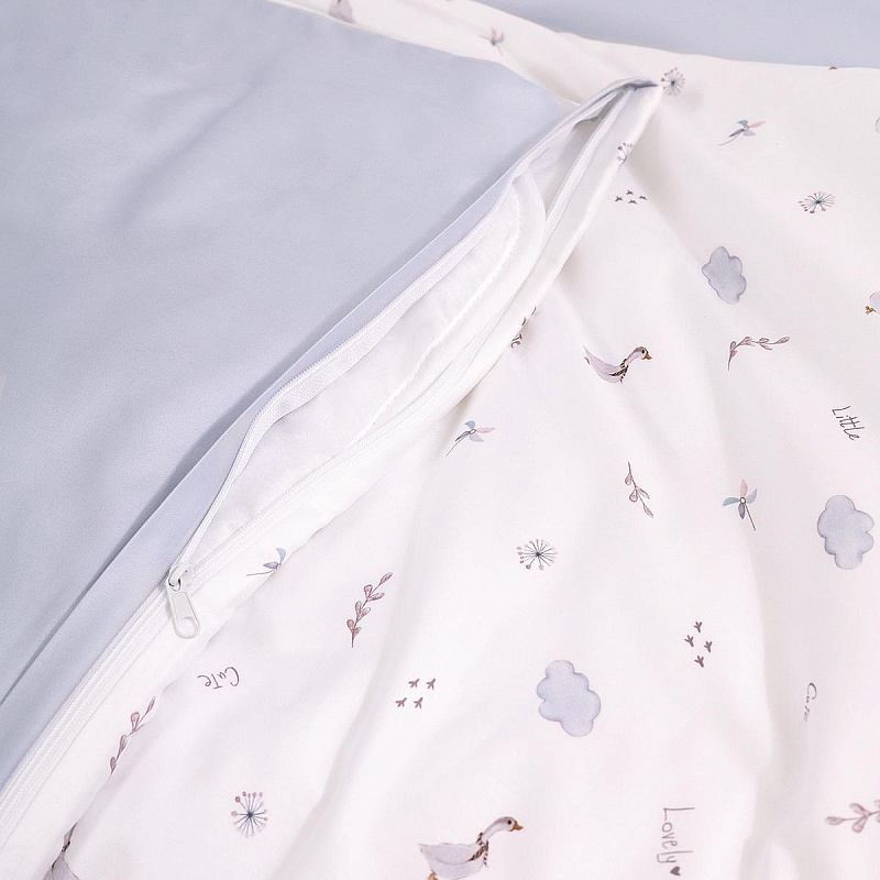 Продуманные детали делают комплект удобным в использовании: пододеяльник на молнии легко застегивается, а простыня на резинке плотно фиксируется на матрасе.