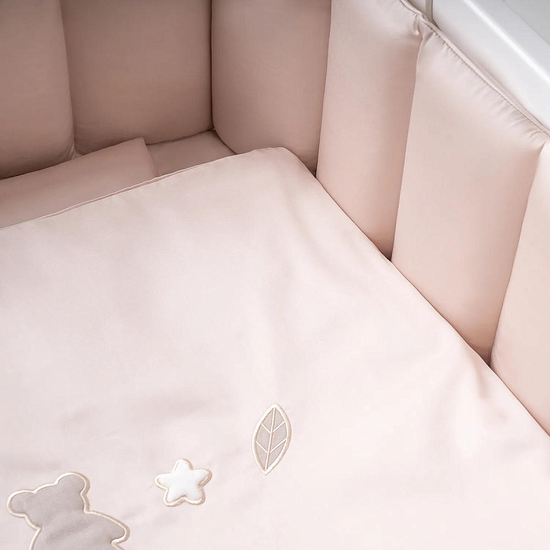 Вышивка в виде милого медвежонка, сердечка, листика и звездочки из атласных ниток придает комплекту особый шарм и уникальность. Дизайн не только радует глаз, но и развивает воображение и тактильные навыки вашего малыша.